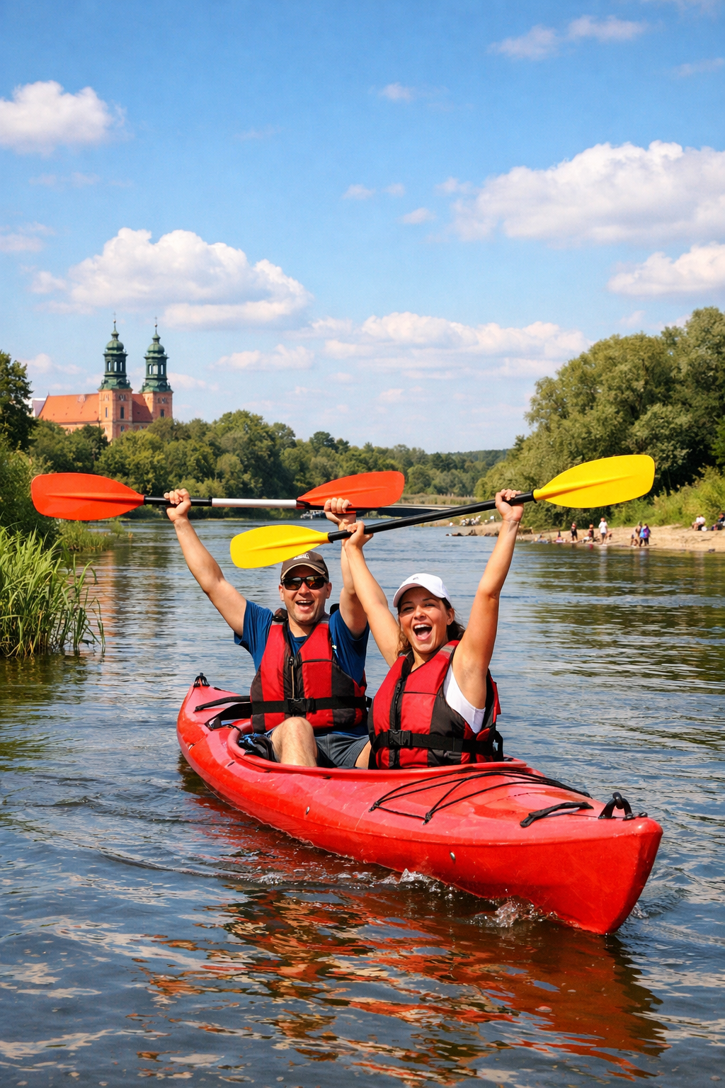 Spływ kajakowy dla 2 os. na trasie Księże Młyny – Uniejów bądź Uniejów – Kozubów oraz rejs widokowy dla 2 os. STATKIEM UNIEJKA po rzece Warcie.